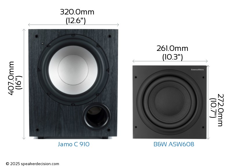 Comparison image of Jamo C 910 and B&W ASW608 Size and External Dimensions