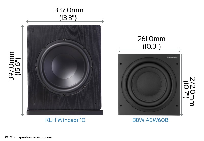 Comparison image of KLH Windsor 10 and B&W ASW608 Size and External Dimensions