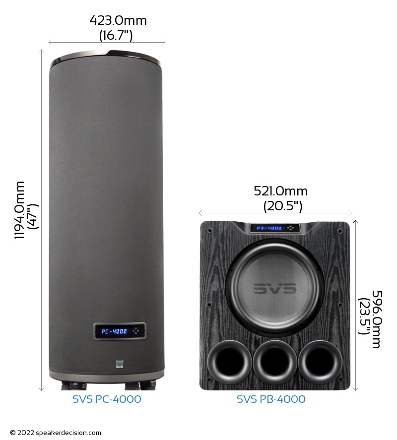 SVS PC-4000 is 98mm narrower and 339mm less deeper than SVS PB-4000 but it is also 598mm taller.