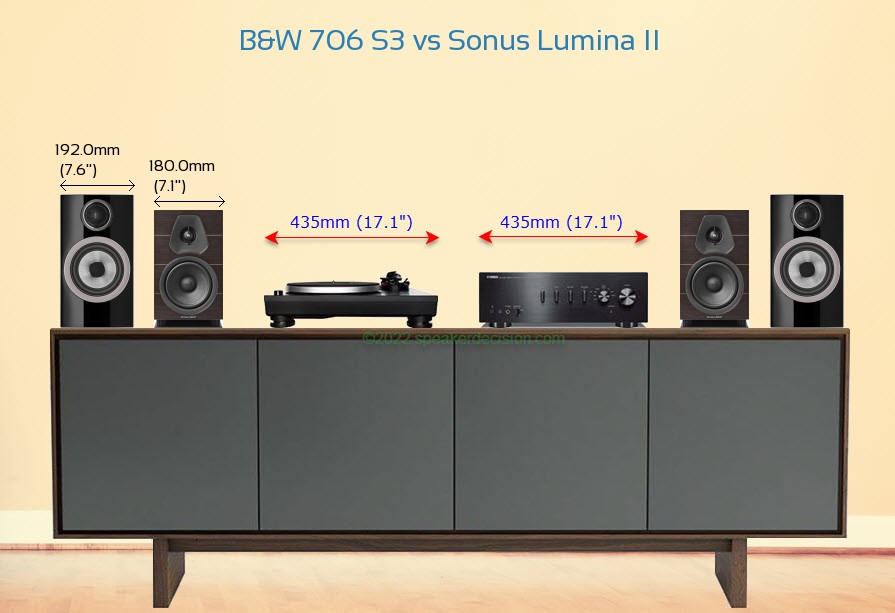 Below you can see the front view size comparison of B&W 706 S3 and Sonus Lumina II in scale.
