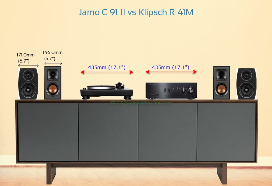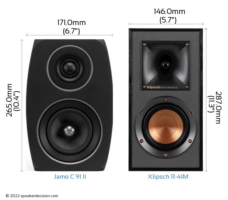 Jamo C 91 II is 22mm shorter and 9mm less deeper than Klipsch R-41M but it is also 25mm wider.