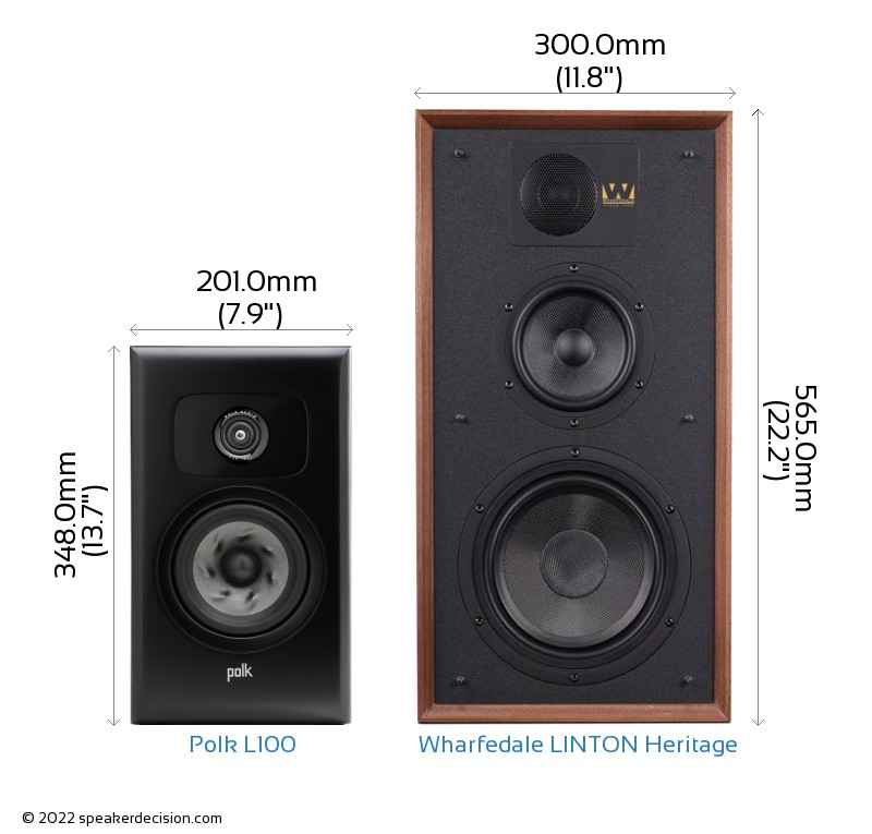 Comparison image of Polk L100 and Wharfedale LINTON Size and External Dimensions